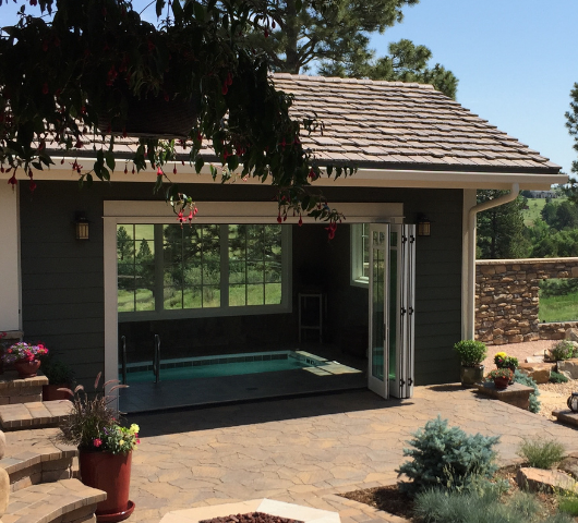 It’s easy to imagine anyone enjoying a swim in this custom-built backyard pool house, complete with a SwimEx 400 OS. Floor to ceiling glass door panels transform this small backyard into a serene retreat. A perfect place to unwind after a long day!