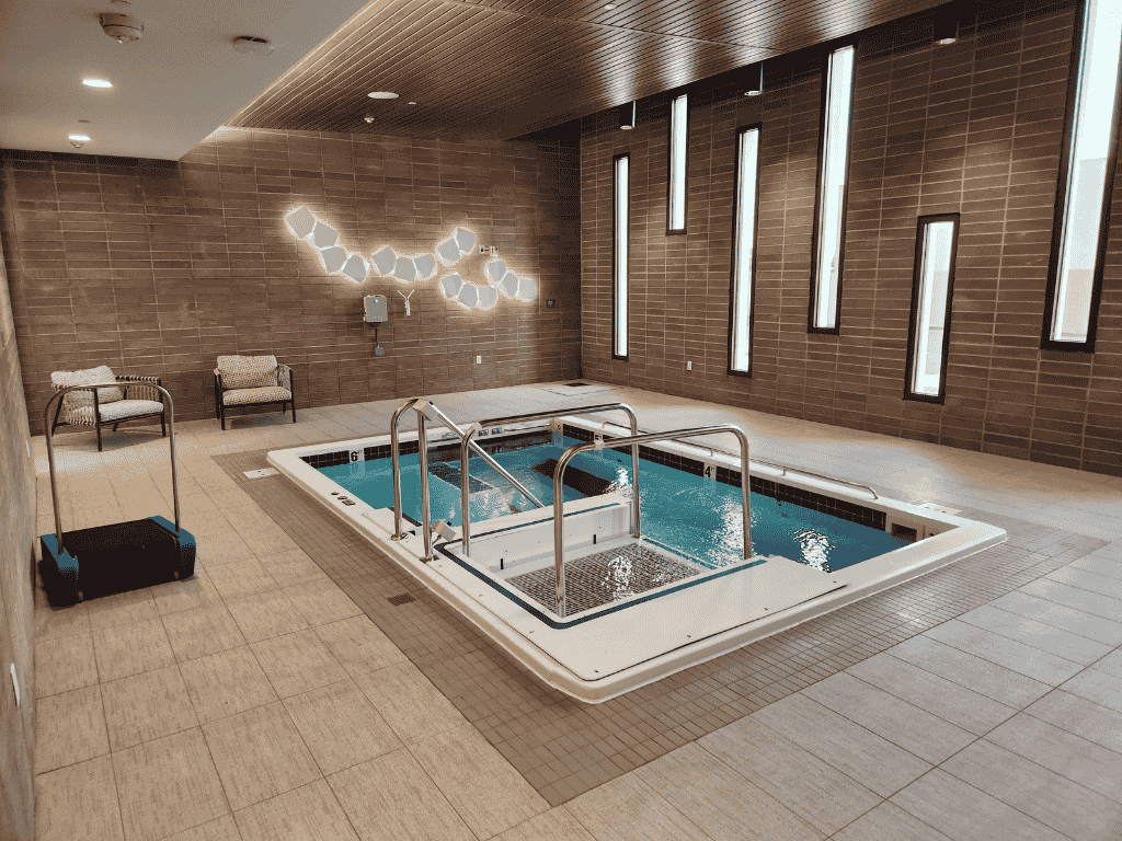 The SwimEx® 1500 T combines expansive space with integrated access, including a zero-entry lift that doubles as a treatment zone. The interior can be customized with integrated treadmills, variable stair configurations, box steps, and benches.